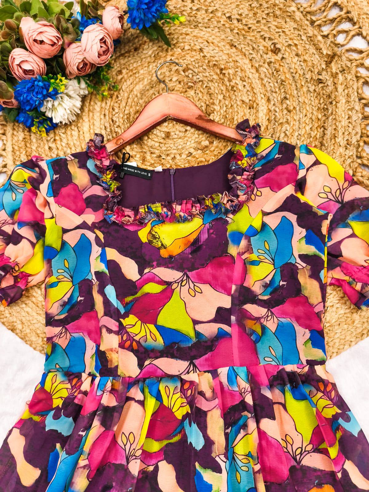 Elevate your vacation style with this beautiful Georgette Maxi Dress, a chic and contemporary piece designed for your holiday adventures. This dress is the perfect blend of comfort and elegance, ensuring you look stunning while enjoying your travels. The vibrant colors and flowing silhouette capture the essence of a carefree vacation, making it a must-have addition to your wardrobe.
