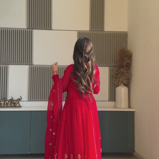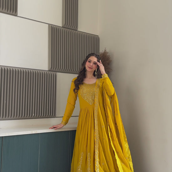 • Breathtaking Embroidery: Each gown is hand-embellished with intricate Zari and sequin work, showcasing the rich heritage of Indian textile artistry