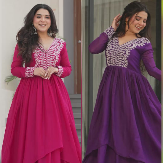 Indulge in the luxurious allure of our Premium Designer Double Flair Gown, a masterpiece crafted for those who appreciate elegance and style. This gown isn't just an outfit; it's a statement of sophistication. Feel the confidence as you step into a world of refined fashion.