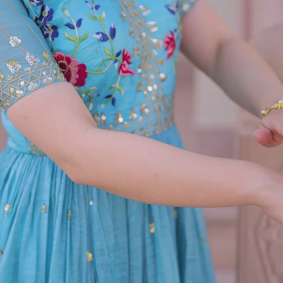 Available in two vibrant colors—mustard yellow and sky blue—these gowns exude timeless beauty and feminine finesse. Elevate your ethnic wardrobe with this effortlessly stylish piece.