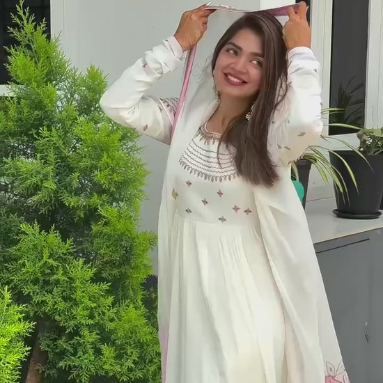 Embroidered Glam Party Wear Gown with Pink Floral Dupatta – Rangbhoomi Exclusive