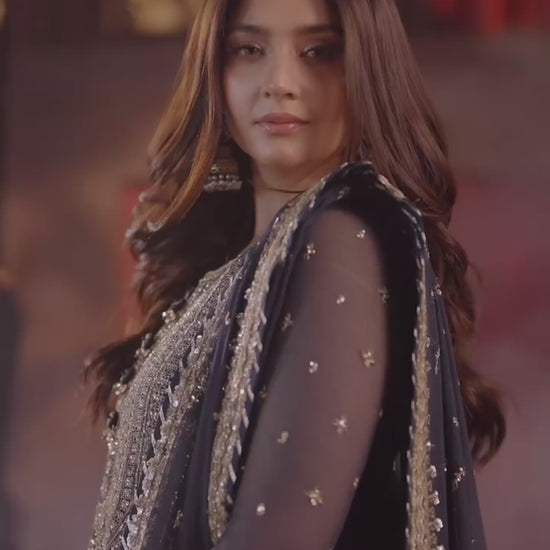 • Show-Stopping Embroidery & Sequins: Intricate gold threadwork and shimmering sequin embellishments adorn the neckline, sleeves, hem, and dupatta border – every detail celebrates fine craftsmanship.