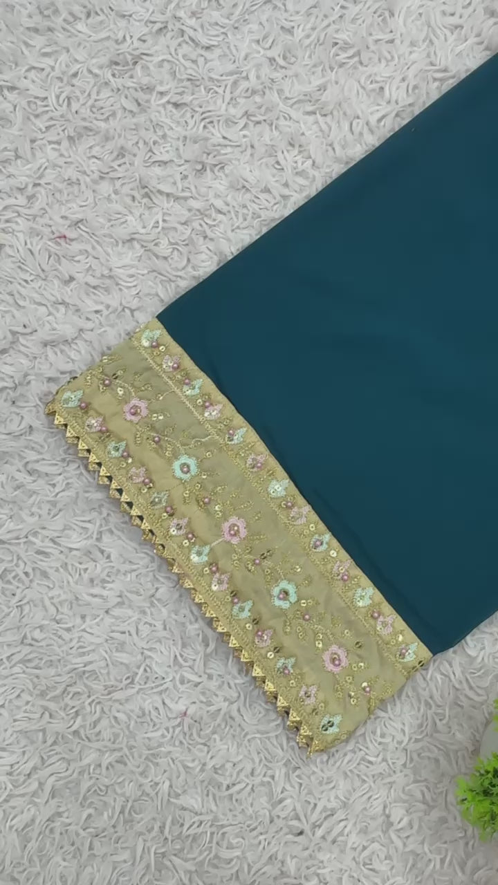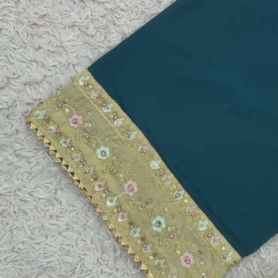 Complementing the top's splendor, the heavy georgette bottom features matching exquisite embroidery and dazzling sequence work, maintaining the ensemble's opulent aesthetic. It boasts a full, comfortable heavy micro cotton inner lining, offering seamless comfort and a perfect fall.