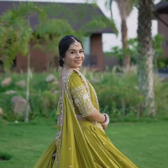 Don't miss the opportunity to add this exquisite Lime Splendor Lehenga Choli to your wardrobe. Order yours today and experience the perfect blend of tradition and contemporary style!