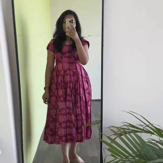 Introducing your new favorite for effortless style: our Maroon Floral Dress. Crafted from soft cotton and fully lined for comfort, this easy-breezy dress features a delightful lotus floral print that's perfect for warm weather and festive occasions. The maroon color is reminiscent of traditional South Indian hues, making it a culturally relevant choice for those who appreciate ethnic designs with a modern twist.