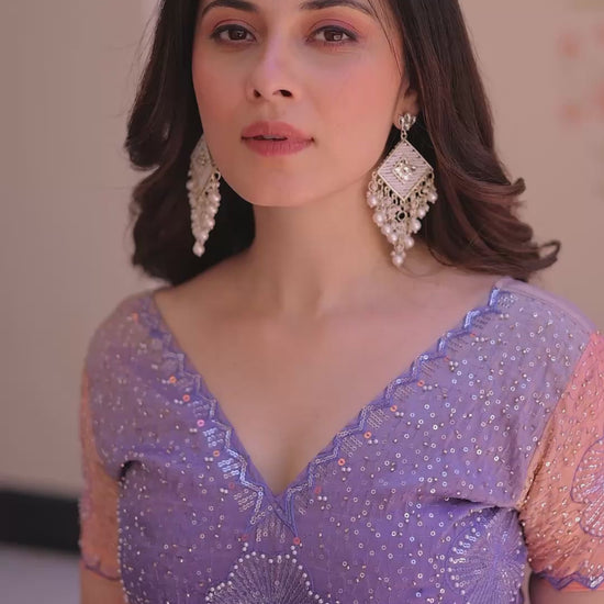This stunning gown features a beautifully crafted bodice with Gold Crush Padding and intricate Beads Embroidered Work, creating a dazzling effect that catches the light. The flattering V-neckline and elegant half sleeves add to its graceful silhouette. The true highlight is the magnificent ombre (shaded) flair, which cascades downwards in a breathtaking gradient of colors, offering a truly unique and ethereal look.