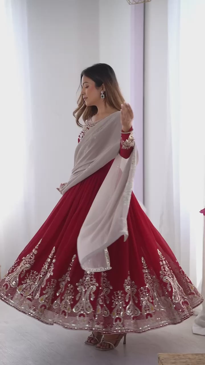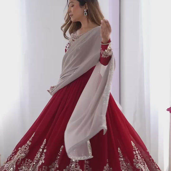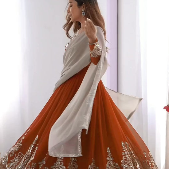 Experience the perfect blend of elegance and comfort with our stunning Designer Party Wear Gown set. This exquisite ensemble is designed to make you the center of attention at any special occasion, from weddings to festive celebrations.