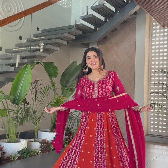 Step into the spotlight with the PREMIUM DESIGNER READYMADE GOWN-DUPATTA COLLECTION 2025, where traditional craftsmanship meets contemporary design. This exquisite gown, adorned with intricate zari and sequin embroidery, is designed for the woman who deserves nothing but the best. The vibrant colors and meticulous detailing ensure you'll be the center of attention at any event.