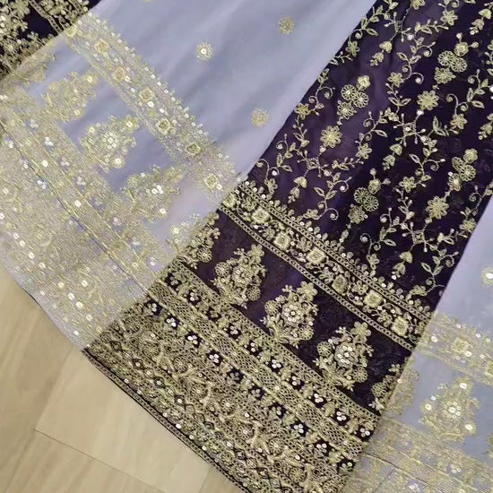 • Fabrics & Work: Faux Blooming with Zari & Sequins Embroidered work