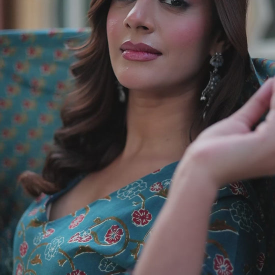 This beautiful kurti pant set is perfect for a variety of occasions. The pure cotton fabric ensures breathability and comfort, while the elegant design and colour options add a touch of sophistication.