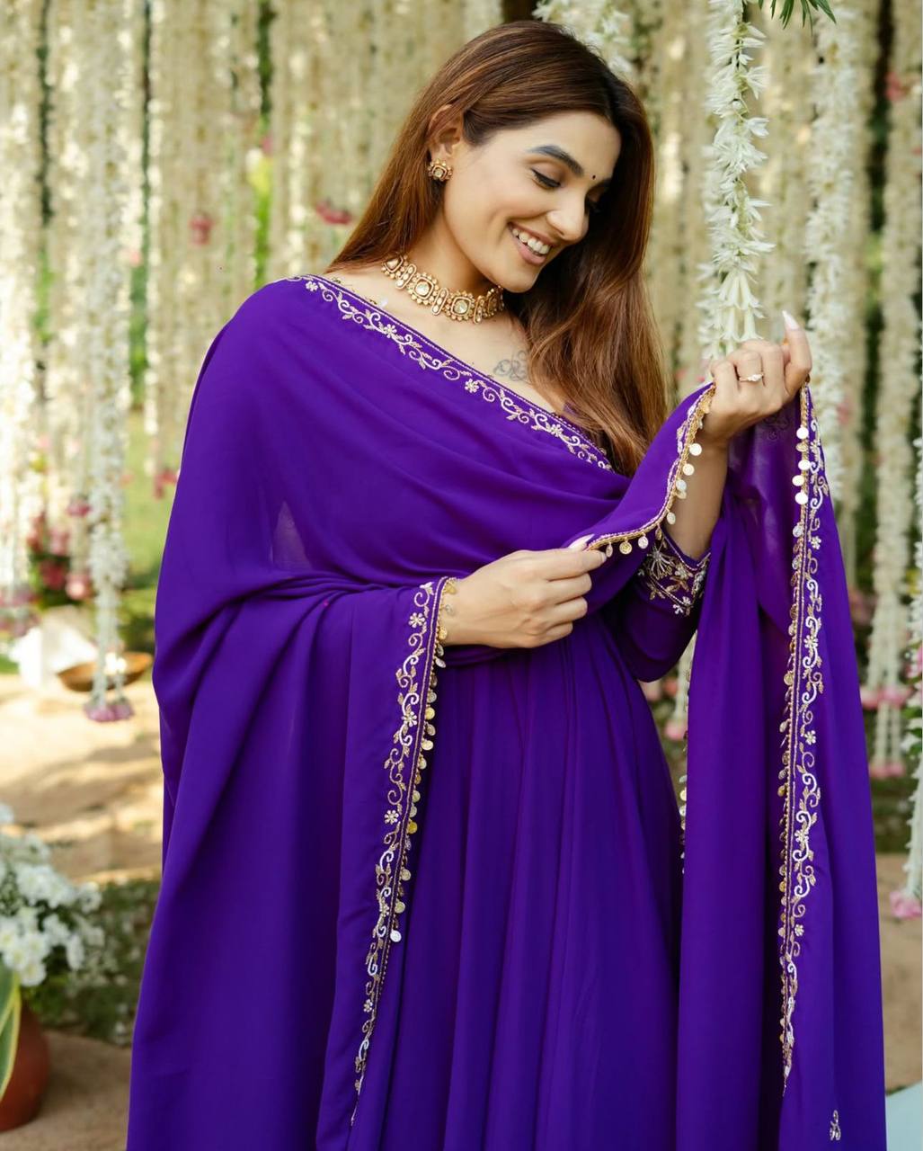 Embrace elegance with this stunning embroidered gown set from Rangbhoomi.