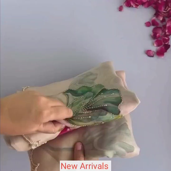 • Ironing: If necessary, iron the saree on a low setting with a protective cloth between the iron and the fabric. Be extra careful with the embellished areas to avoid any damage.