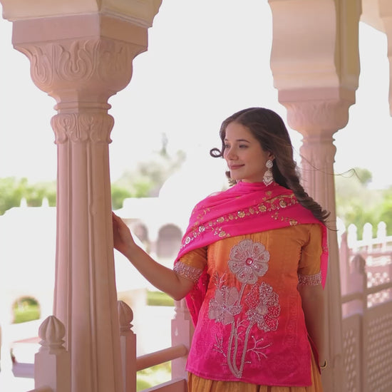 • Complete Outfit: Includes a beautifully crafted Kurti, Sharara, and Dupatta, providing a complete and stunning ensemble.