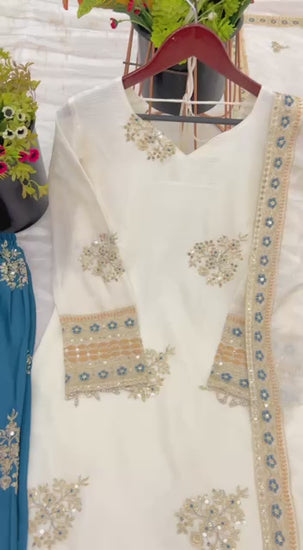 Complete your mesmerizing look with the coordinating Heavy Pure Chinnon Silk dupatta. This ethereal piece is richly embellished with Heavy Embroidery Sequence Work and framed by an elegant Lace Border, adding a final flourish of sophistication and charm to your ensemble.