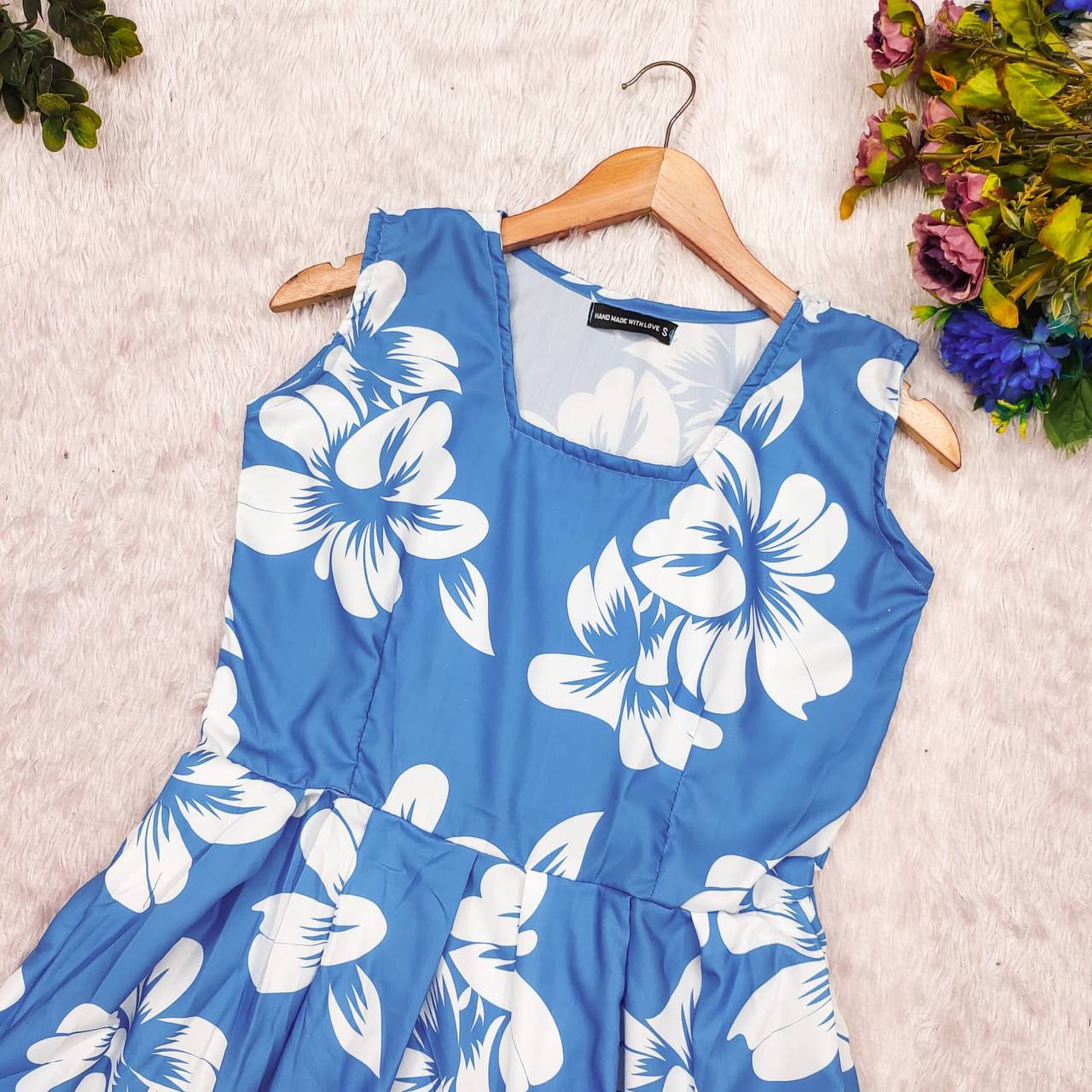 Embrace the warmth and joy of the season with our stunning Summer Bloom Dress, a vibrant floral essential perfect for your vacation, staycation, or holiday wardrobe! This beautiful dress, featuring a delightful hibiscus print against a serene sky blue background, captures the essence of summer sunshine.