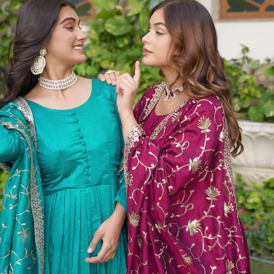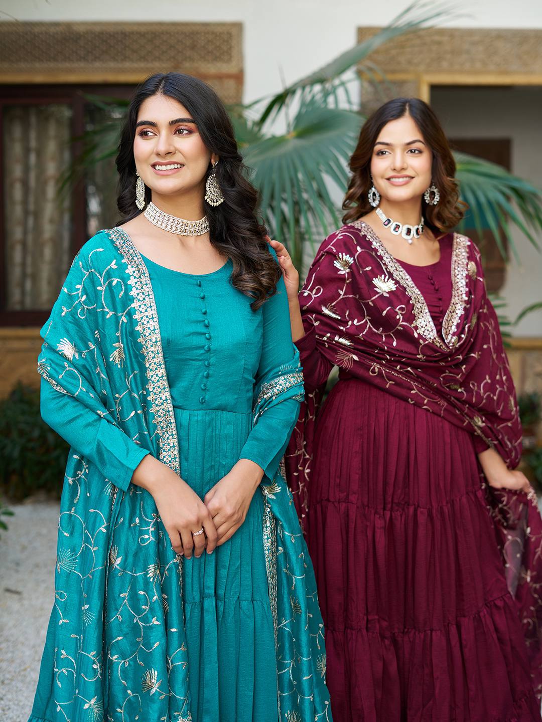 Step into the spotlight this festive season with our exquisite Long Gown and Heavy Dupatta set from Rangbhoomi! Crafted in a captivating azure blue, this ensemble combines luxurious fabric with intricate detailing, perfect for any celebration.